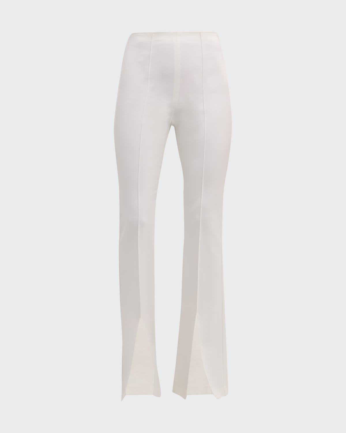 Alice + Olivia "Emiko" sleek pants feature centercut slit cuffs Approx. 10.6" rise; 34.8" inseam High rise Full length Fitted through hip; flared from knee Back zip closure Viscose/nylon/polyamide/elastane Lining: Polyester Dry clean Imported