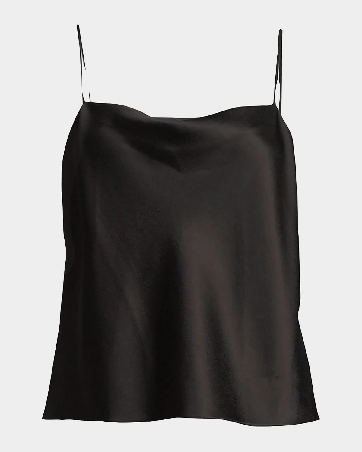 Alice + Olivia "Harmon" drapey tank. Square neckline. Spaghetti straps. Loose fit. Slipover style. Triacetate/polyester. Dry clean. Imported.