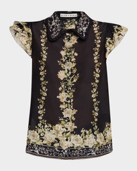 Effortlessly feminine, the "Martel" blouse by Alice + Olivia is crafted in airy silk organza with a delicate floral motif. Spread collar Flutter sleeves; approx. 10.3"L Classic fit Hem falls to the hip Buttonfront Cotton/silk Unlined Dry clean Imported