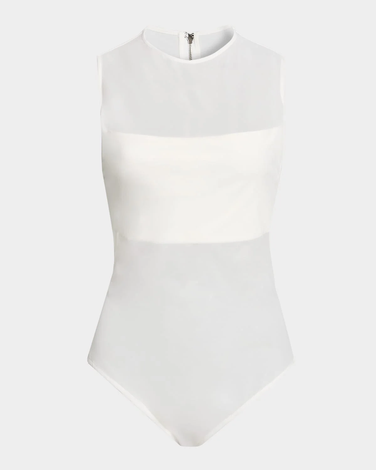 Alice + Olivia sheer paneled mesh bodysuit Crew neckline Sleeveless Fitted Snapgusset; center back zip Nylon/polyamide/elastane Lining: Viscose Dry clean Imported