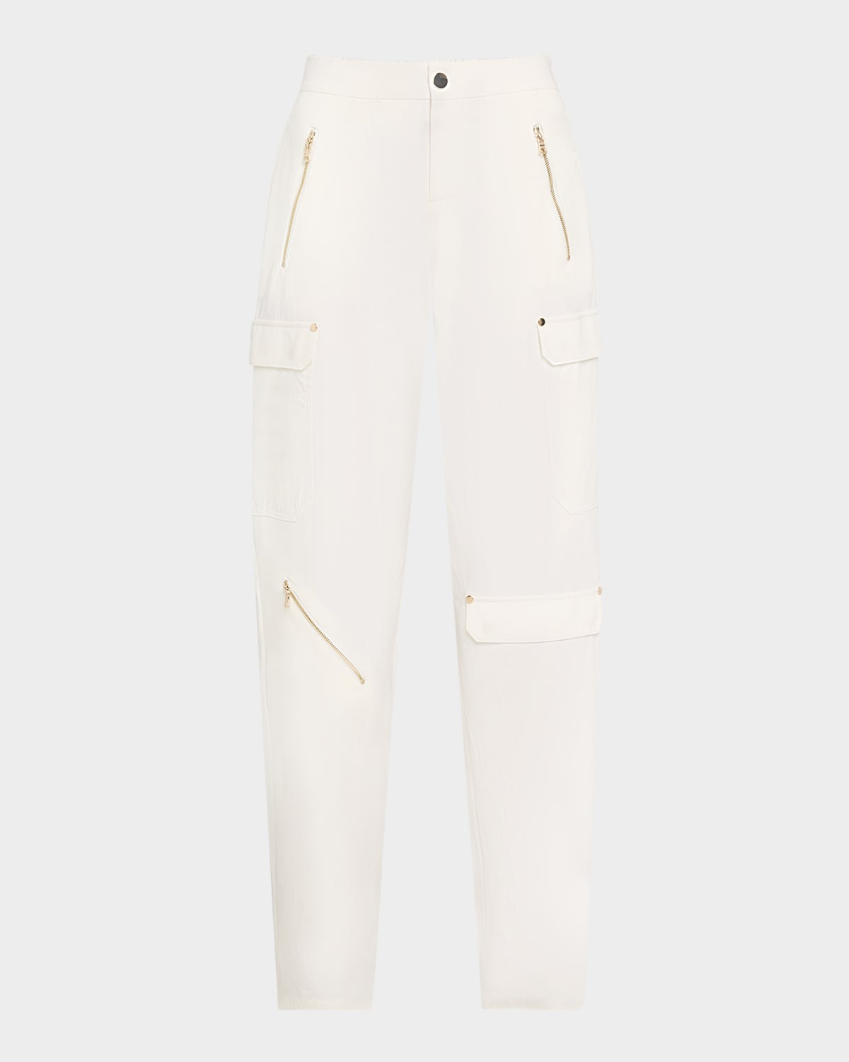 - Alice + Olivia "Milo" balloon-leg cargo pants crafted from soft nylon with a hint of stretch - Approx. 9.3" rise; 34" inseam - Mid-rise elasticized waistband - Side zipper pockets - Full length - Wide legs - Button/zip fly - Nylon/polyamide/elastane - Lining: Polyester - Imported
