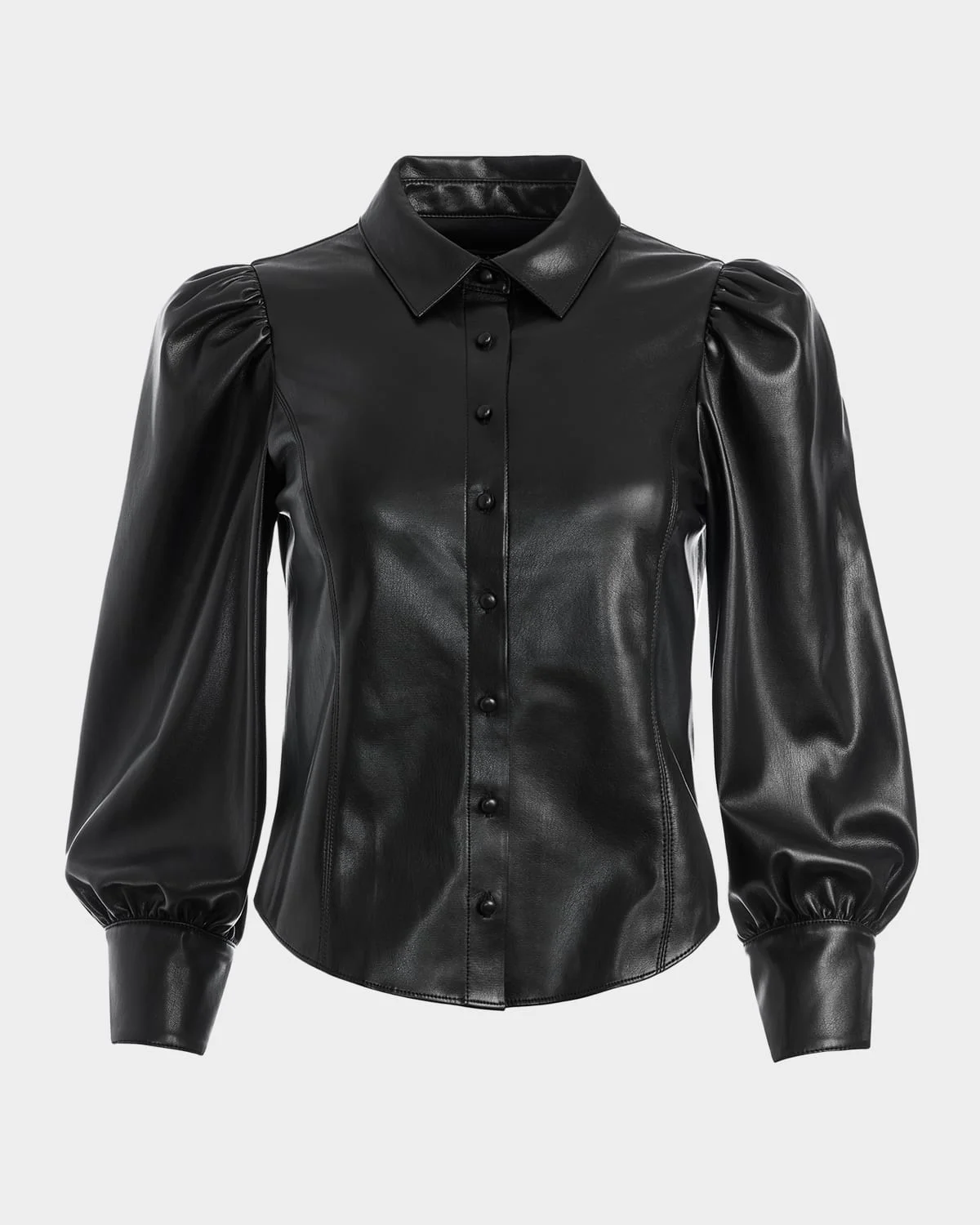 Nadine Puff-Sleeve Vegan Leather Blouse