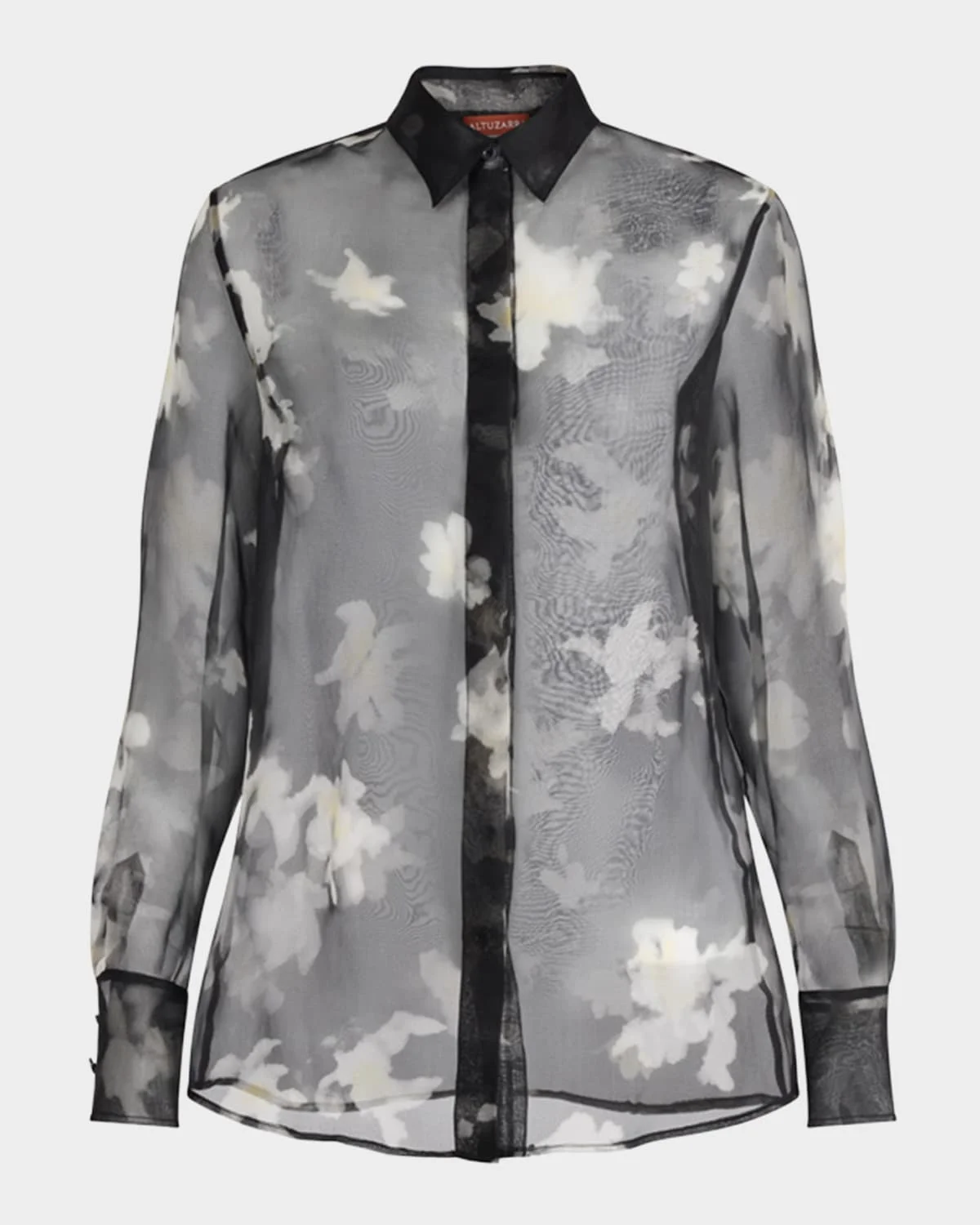 - Altuzarra "Chika" top in sheer floral printed silk - Point collar; concealed button front - Long sleeves; button cuffs - Relaxed fit - Silk - Made in Portugal
