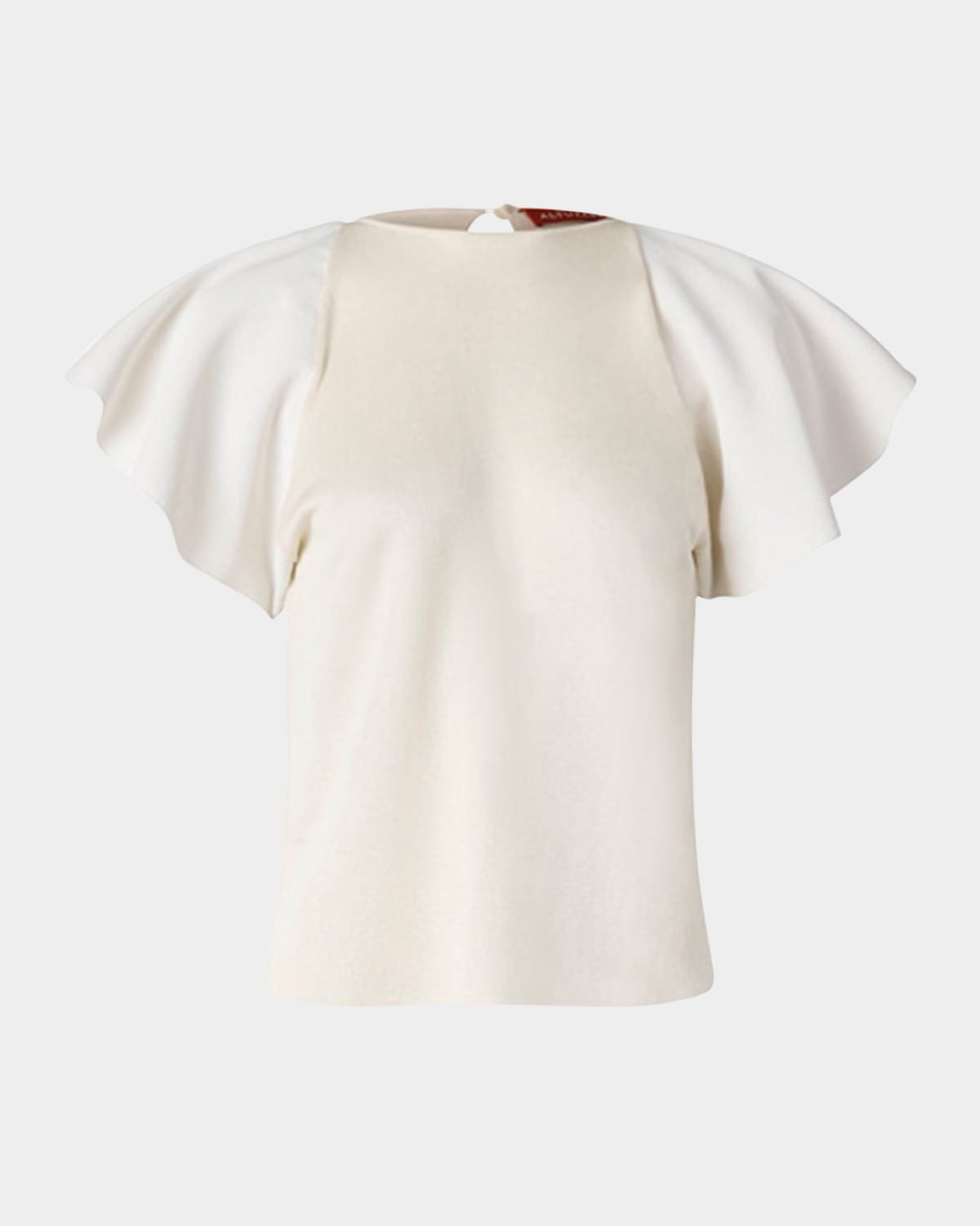 - Altuzarra "Zuzu" knit top featuring contrast flutter sleeves - Crew neckline - Short sleeves - Relaxed fit - Button/leyhole back - Pullover style - Viscose - Dry clean - Imported