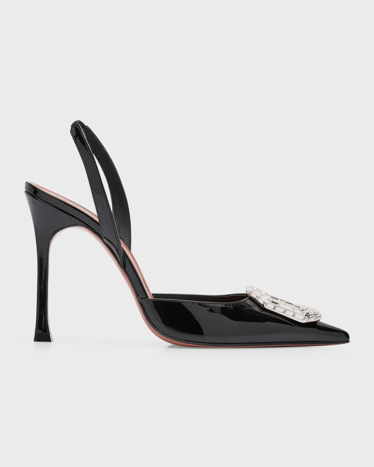 Amina Muaddi "Camelia" pumps in ombre patent leather with crystal ornament 4.25 in / 105 mm stiletto heel Pointed toe Halter slingback strap Leather/Rubber outsole Lining: leather Made in Italy