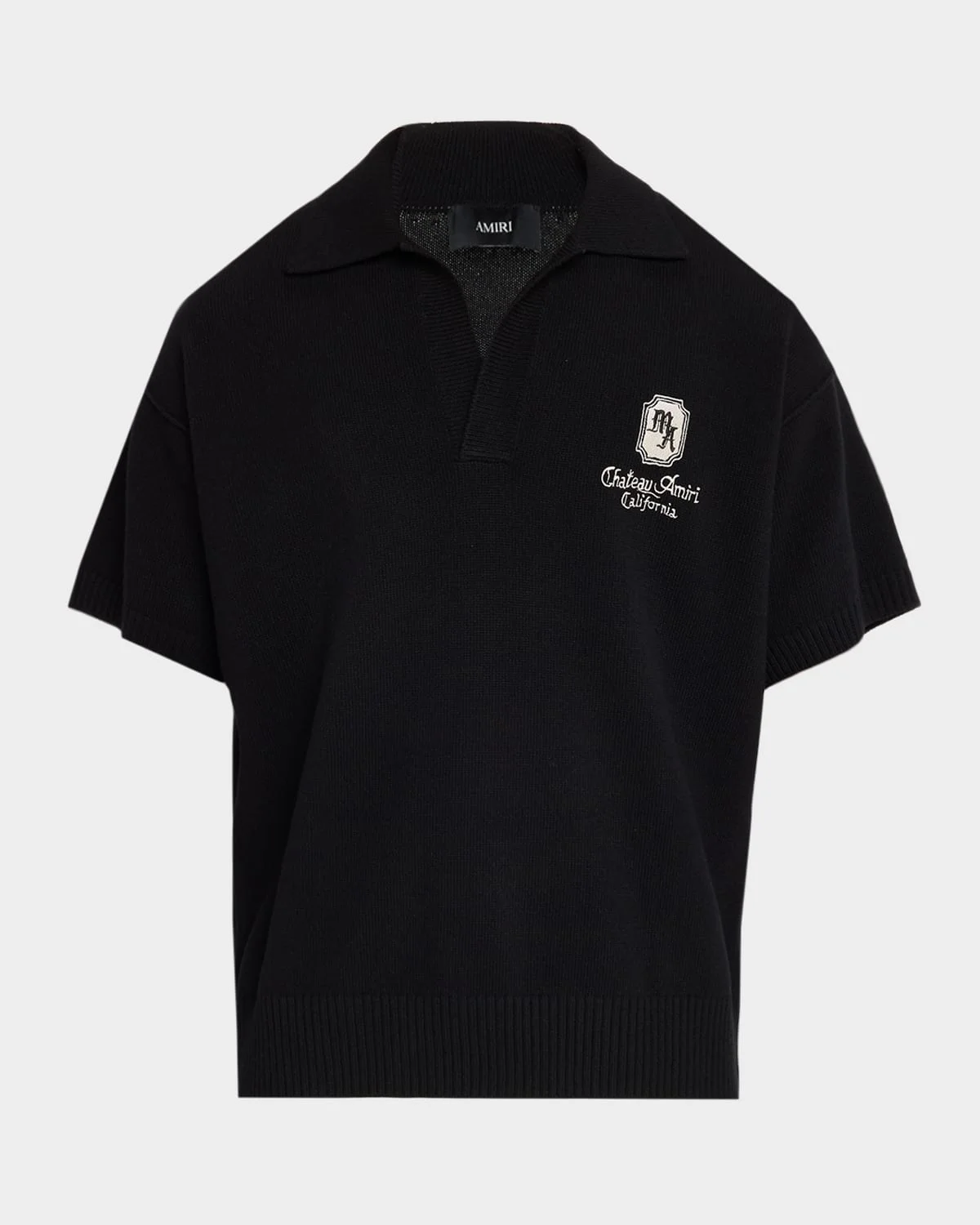 This Amiri wool polo sweater offers a design of an imagined premier hotel inspired by iconic Hollywood hideaways. Embroidered with seasonal logo graphics on front and back From the & nbsp;Spring-Summer 2026 Collection Johnny collar Ribbed cuffs and hem Boxy fit Wool/polyester Made in Italy