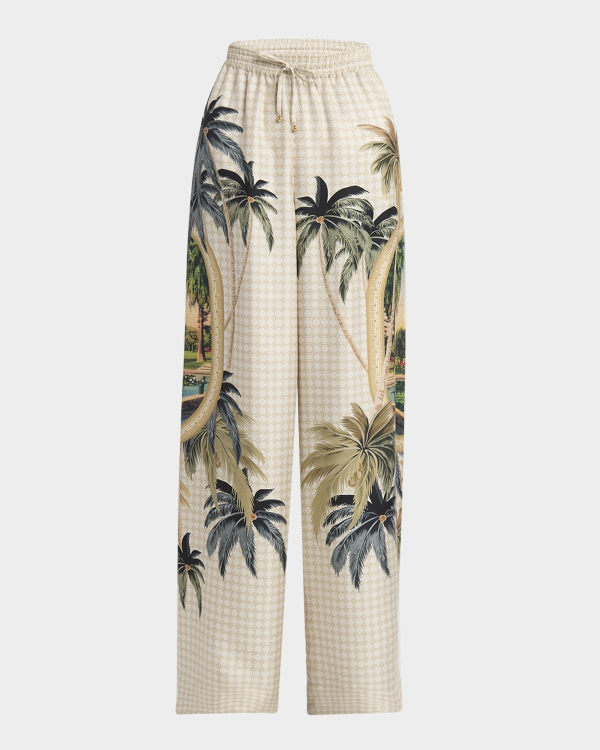 - Amiri pants in multi-pattern Paradise print - Mid-rise drawstring waistband - Full length - Wide legs - Pull-on style - Silk - Dry clean - Made in Italy