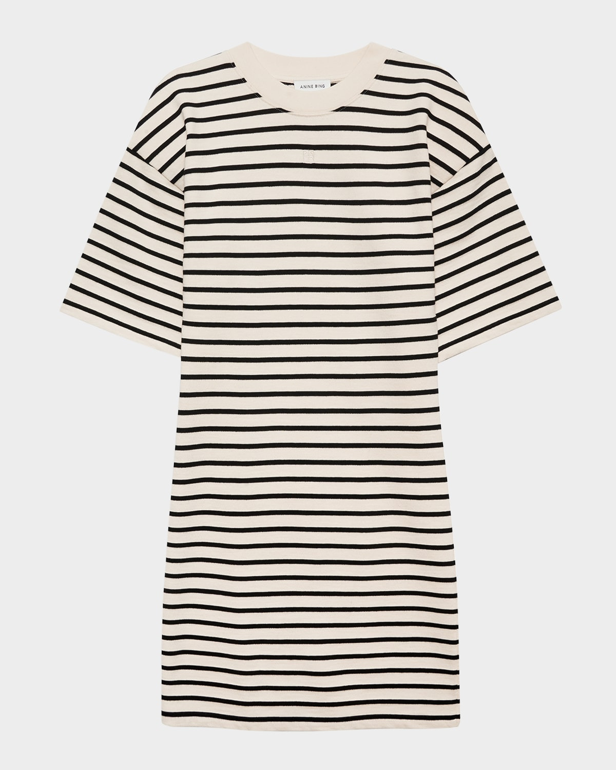 - ANINE BING "Mona" striped knit mini dress - Crew neckline - Dropped shoulders - Short sleeves - Shirtdress silhouette - Hem falls above the knee - Pullover style - Cotton/polyester - Machine wash - Imported