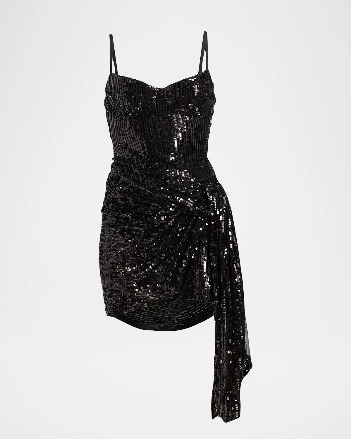 AREA bustier dress is crafted from sequined chiffon with figure-flattering draping wrapped across the waist Sweetheart neckline Sleeveless Sheath silhouette Mini length Invisible back zip Viscose/nylon/polyamide/elastane Imported