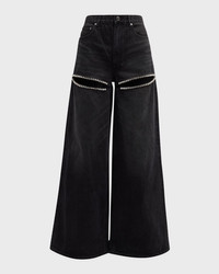AREA jeans featuring crystal embellished thigh slits and a heart yoked back High rise Fivepocket style Wide legs Full length Button/zip fly; belt loops Cotton Imported