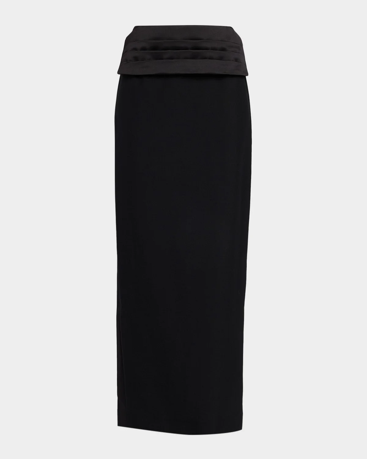 Crafted from wool crepe, this skirt from AREA features tuxedo details like a & nbsp;pleated satin cummerbund waist and satin sit stripes HIgh waist Skirt falls straight from hip to hem Full length Walking vent back Invisible back zip Full length Wool Made in Italy SIZE & FITModel measurements: 5 & apos;10" tallModel is wearing a US size 4/Small