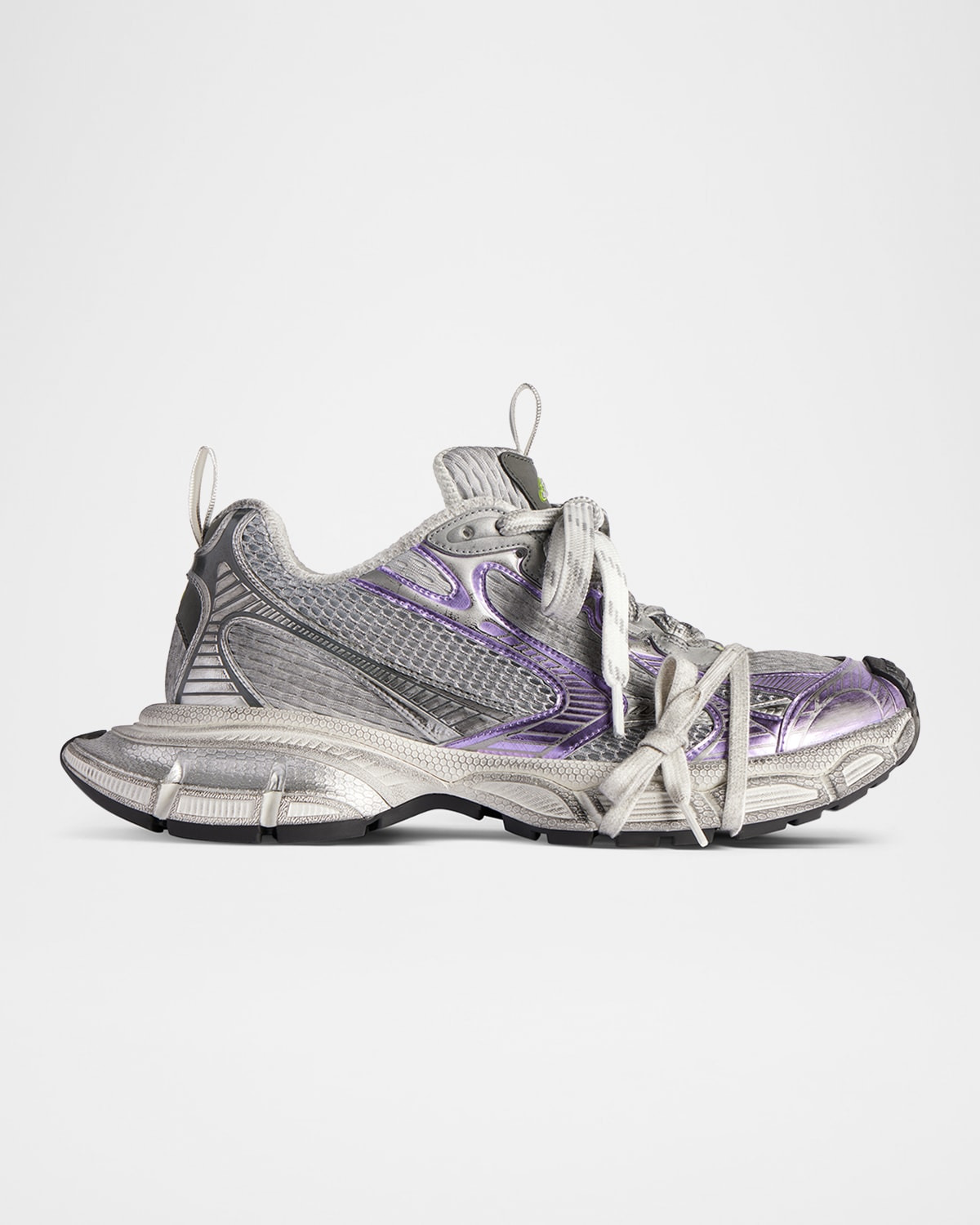 - Balenciaga trainer sneakers in faux leather (polyurethane) and breathable mesh fabric with worn-out effect. - 2.00 in / 50 mm chunky flat heel. - Reinforced round toe. - Lace-up vamp. - Cushioned footbed. - Destressed rubber sole. - Spot clean. - Imported.