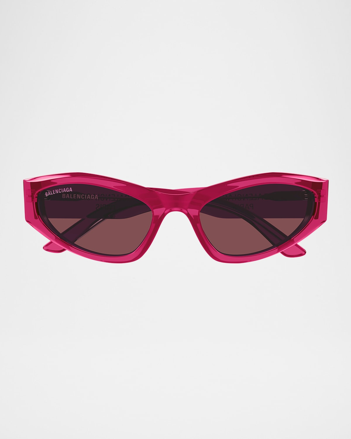 - Balenciaga cat-eye sunglasses in acetate - Eye/bridge/temple (in mm): 58-19-140 - Solid lenses - Saddle nose bridge - Thick, tapered arms - Logo at the temples - Acetate - 100% UVA/UVB protection - Made in Italy - Proposition 65 warning for California residents