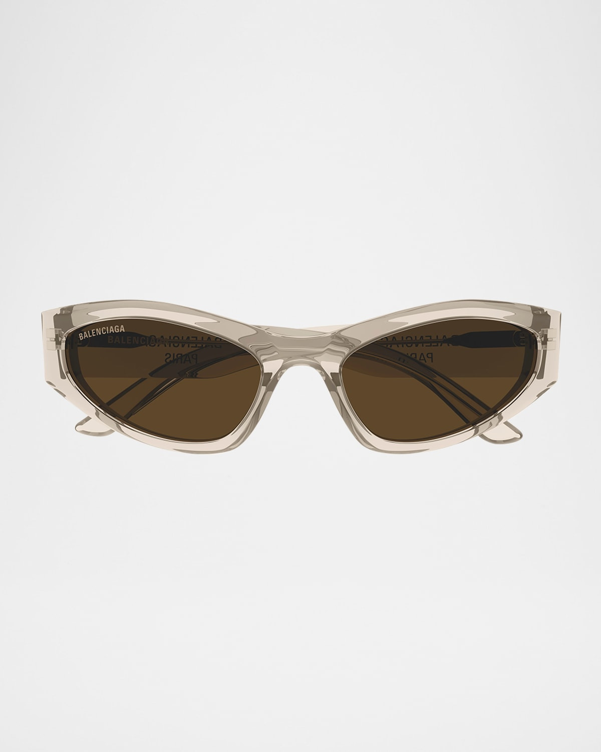- Balenciaga cat-eye sunglasses in acetate - Eye/bridge/temple (in mm): 58-19-140 - Solid lenses - Saddle nose bridge - Thick, tapered arms - Logo at the temples - Acetate - 100% UVA/UVB protection - Made in Italy - Proposition 65 warning for California residents
