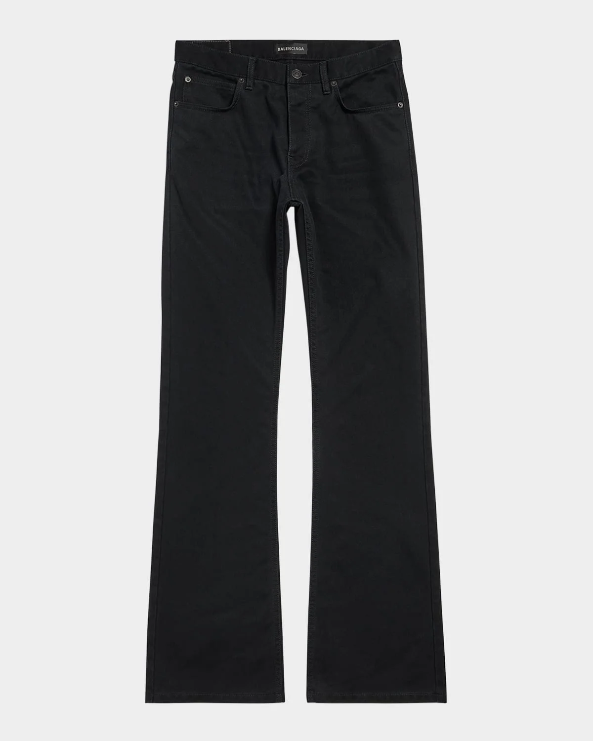 - Balenciaga pants in soft Italian ring denim - Mid rise sits high on hip - Five-pocket style - Logo engraved flex buttons - Leather logo patch back - Straight legs - Full length - Button/zip fly; belt loops - Cotton - Dry clean - Made in Japan
