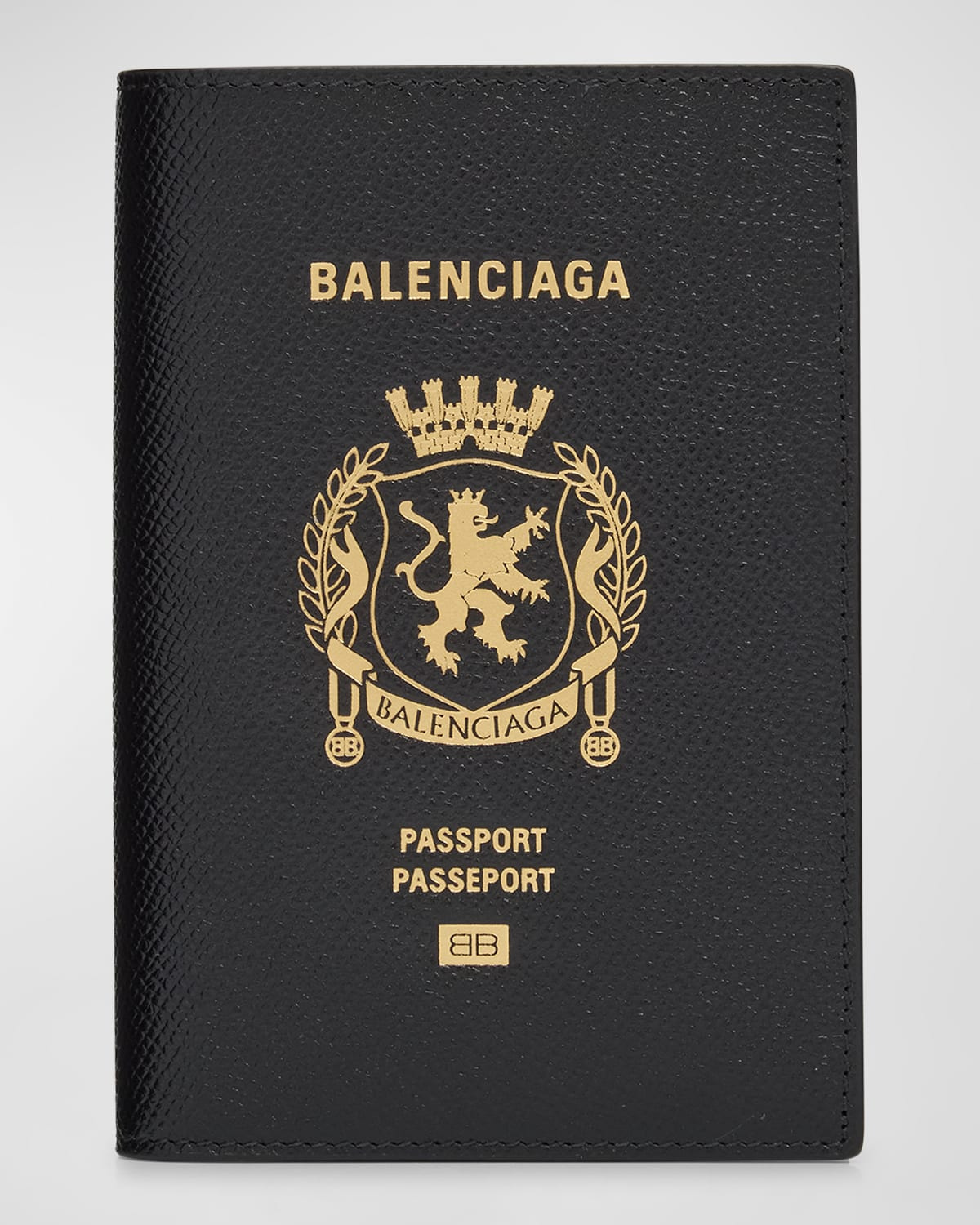 Balenciaga passport holder in semimatte soft textured calfskin Logoprint on the front Four card slots One flat pocket Approx. 5.5"H x 3.9"W x 0.6"D Made in Italy