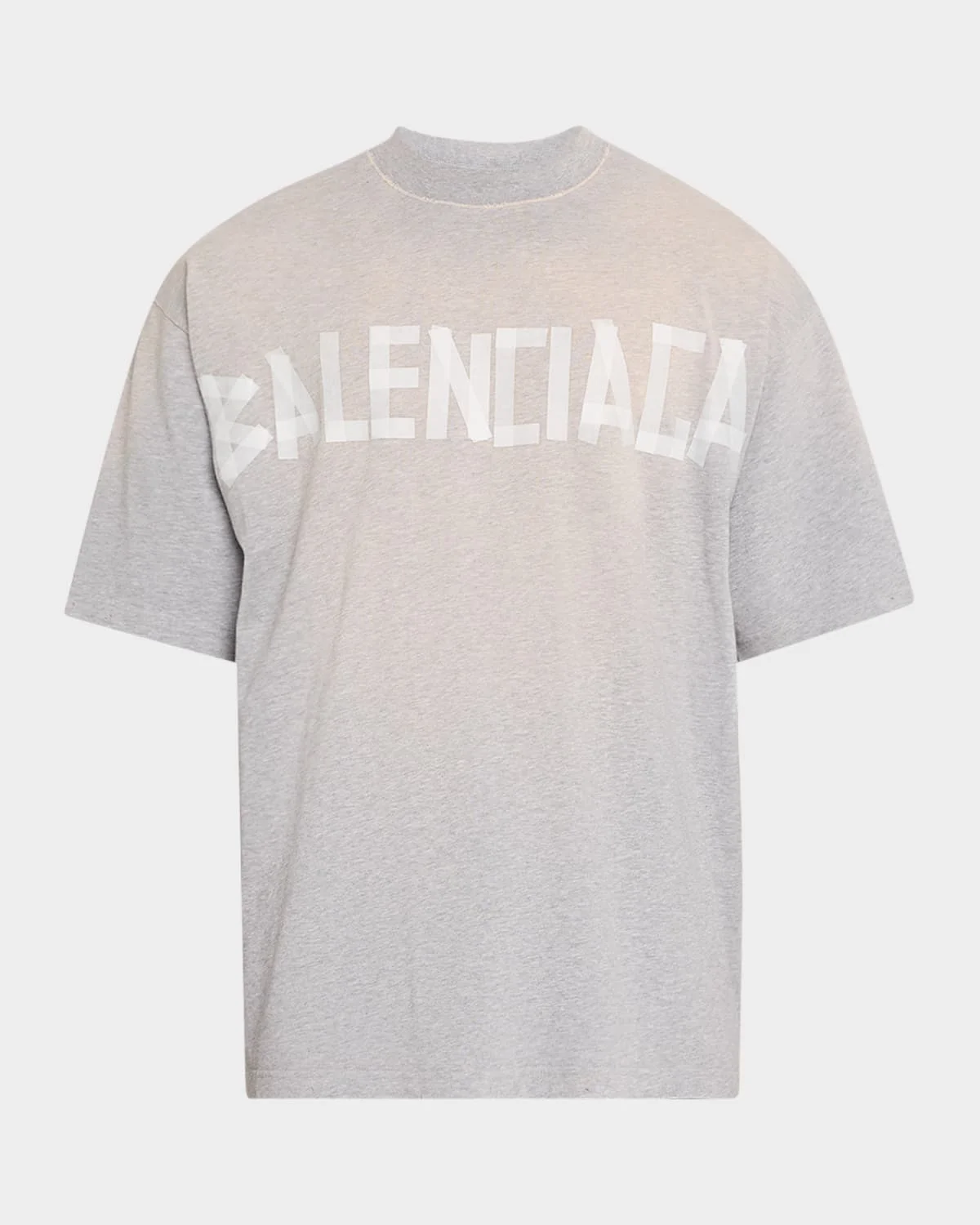 Balenciaga jersey T-shirt with washed-out effect Taped logo print at chest and back Crew neckline Short sleeves Medium fit Pullover style Cotton Made in Portugal Model is 6'1"/185cm.