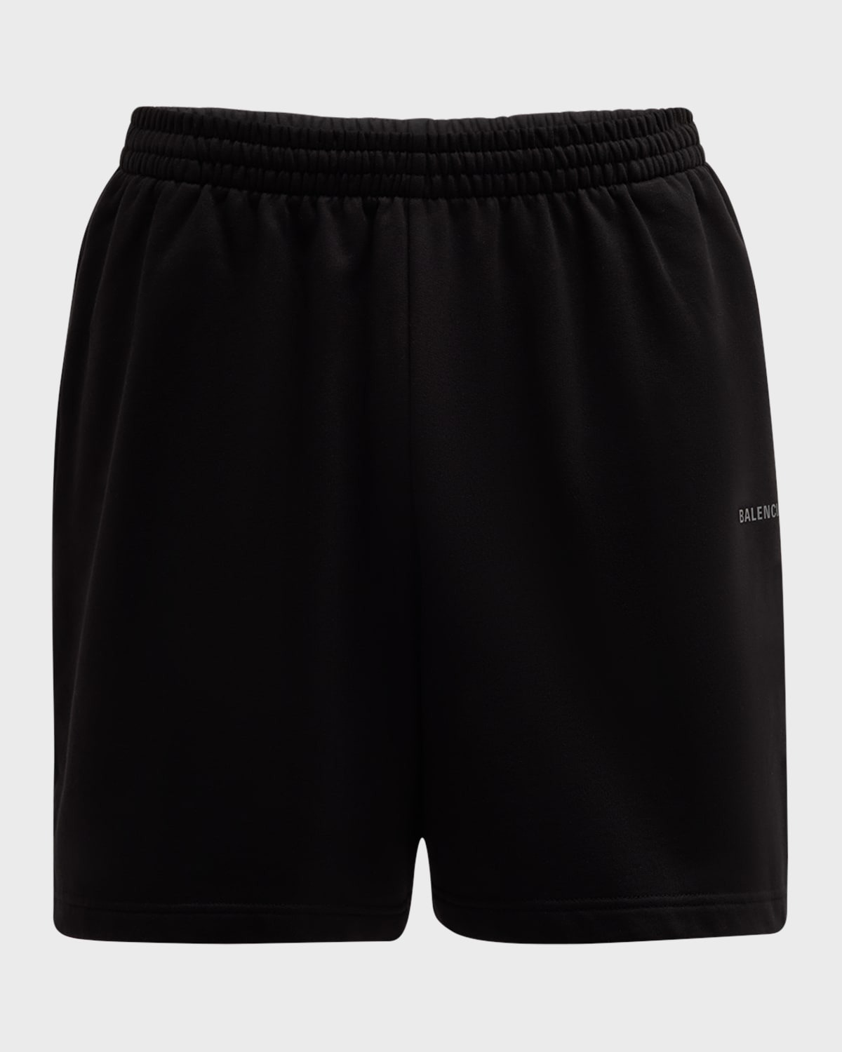 - Balenciaga sweat shorts with small logo at side - Elasticized waist - Regular rise - Side slip pockets - Relaxed legs - Pull-on style - Cotton - Made in Portugal - Model is 6'1"/185cm.