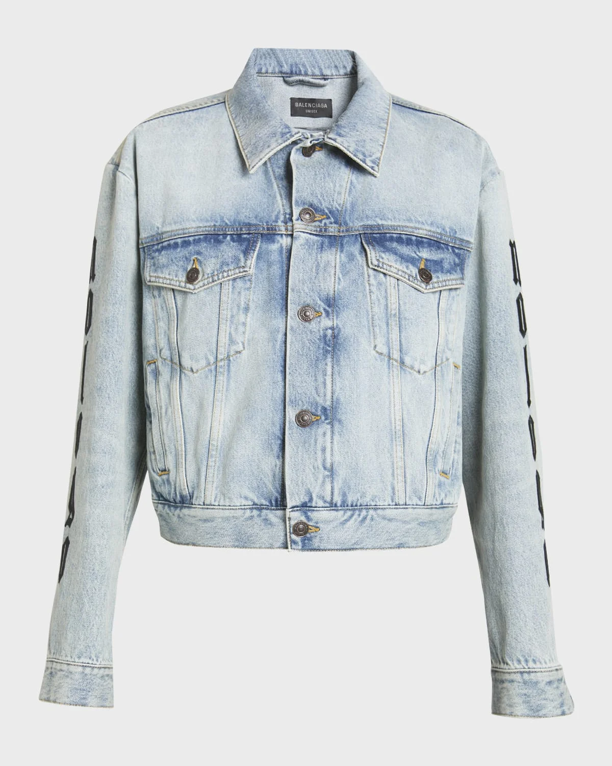 Japanese twill This item is unisex 5 button front 2 buttoned pockets at chest 2 slash pockets Buttoned cuffs Adjustable buttoning at waist Balenciaga engraved flex buttons Nologo artwork embroidered at back and on sleeves Made in Italy