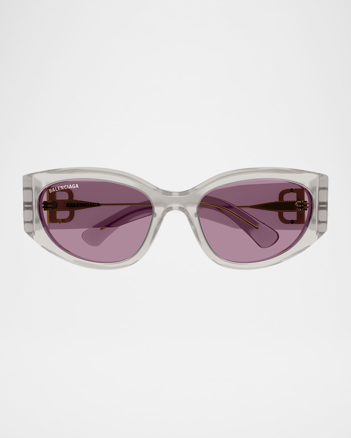 - Balenciaga round sunglasses in acetate - Eye/bridge/temple (in mm): 55-19-125 - Solid lenses - Saddle nose bridge - Thick, tapered arms - B logo at the temples - Acetate - 100% UVA/UVB protection - Made in Italy - Proposition 65 warning for California residents
