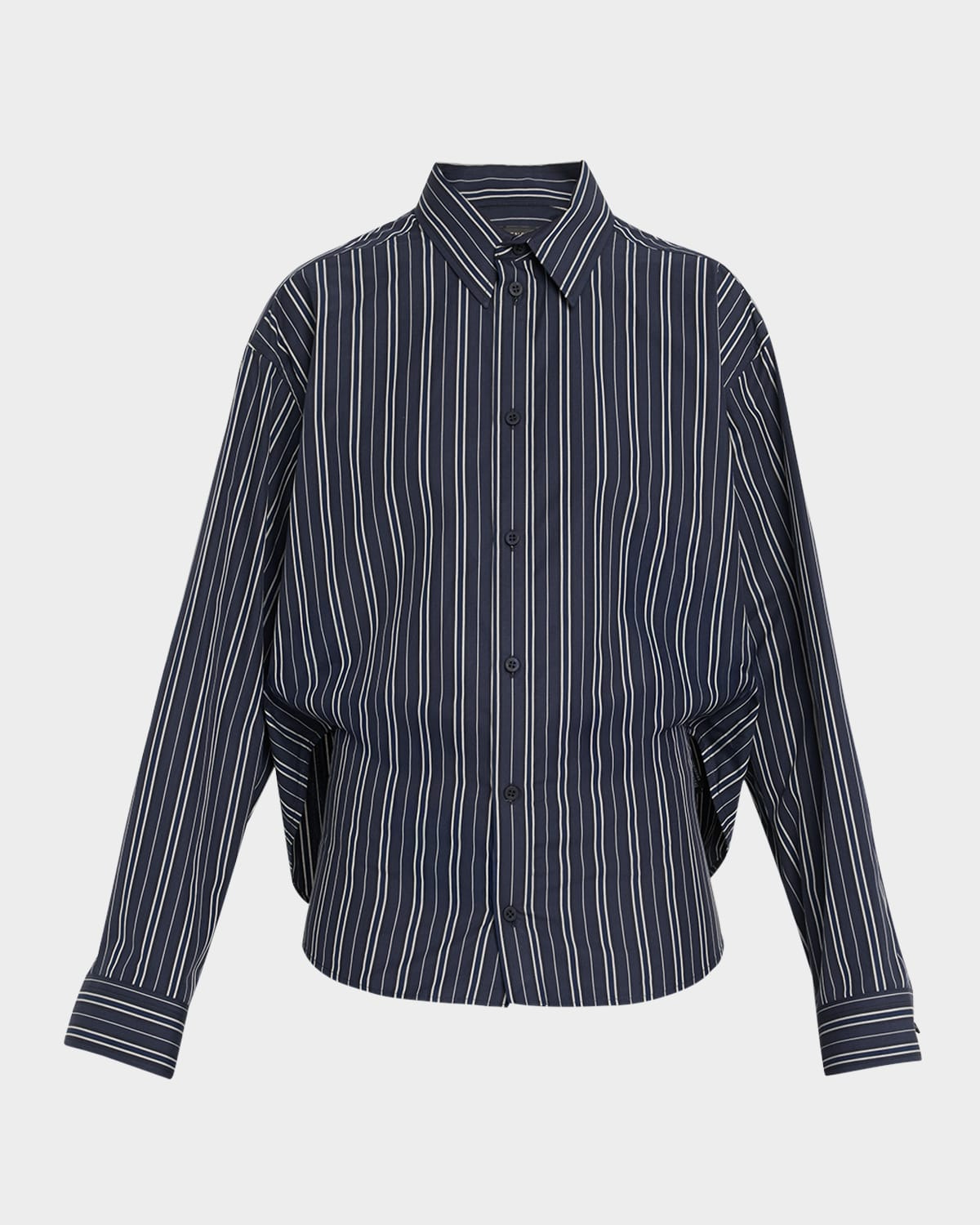 - Balenciaga striped shirt featuring a semi-fitted hips - Point collar; button front - Long sleeves; button cuffs - Oversized fit - Cotton/polyester - Hand wash, machine wash line dry - Made in Italy