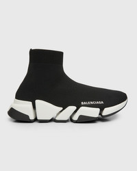 - Balenciaga sock sneakers in new recycled polyester/elastane knit - Fit: - Whole sizes only; for 1/2 sizes, order next size up - Flatform heel, 1 1/2" (38mm) heel; 3/4" platform (size 42) - 5" shaft - Round toe - Rubber outsole - Lining: Fabric - Trim: Faux leather - Made in Italy