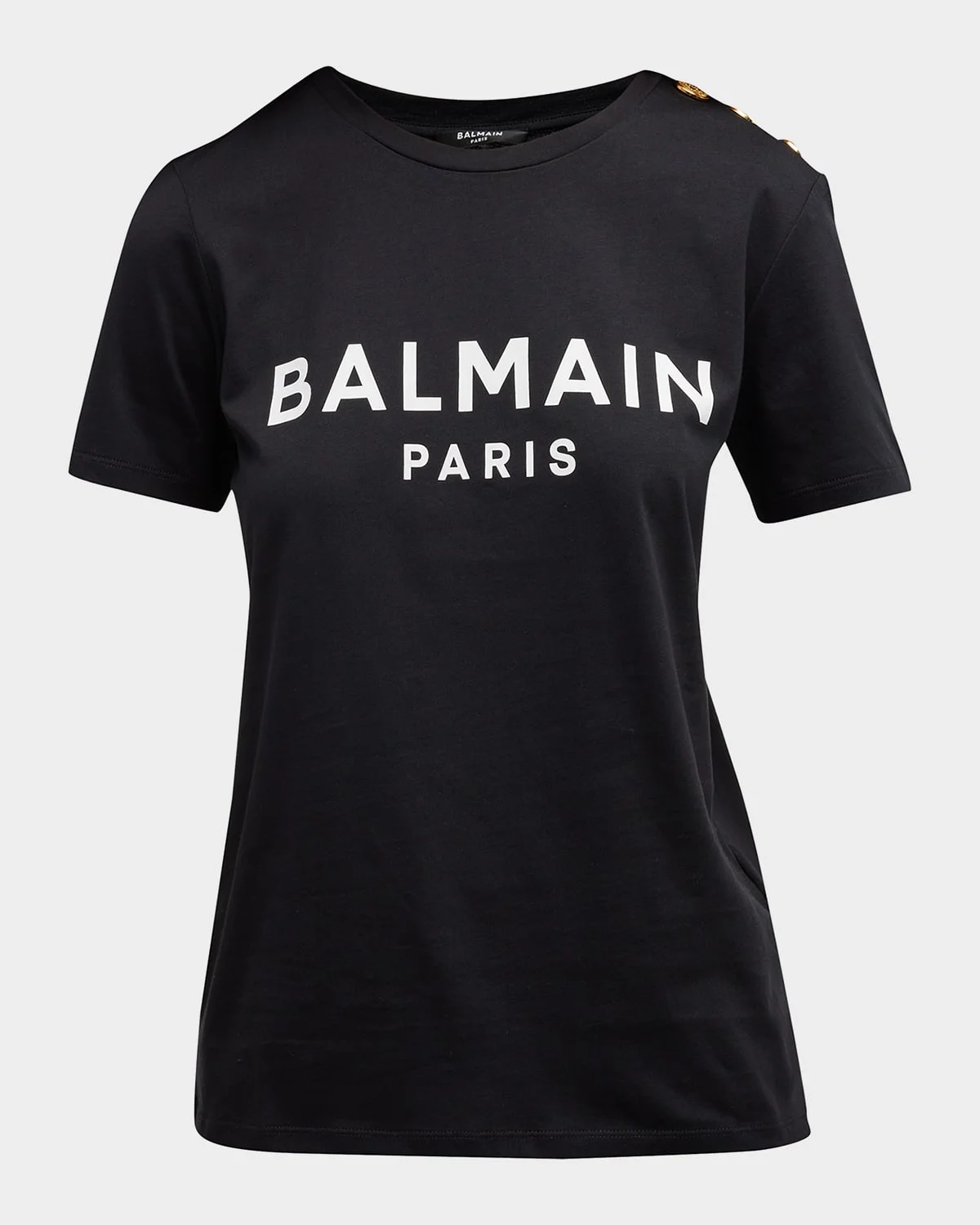 Balmain Tshirt with a flocked logo front and threebutton shoulder detail Crew neckline Short sleeves Relaxed fit Shirttail hem Pullover style Cotton Imported