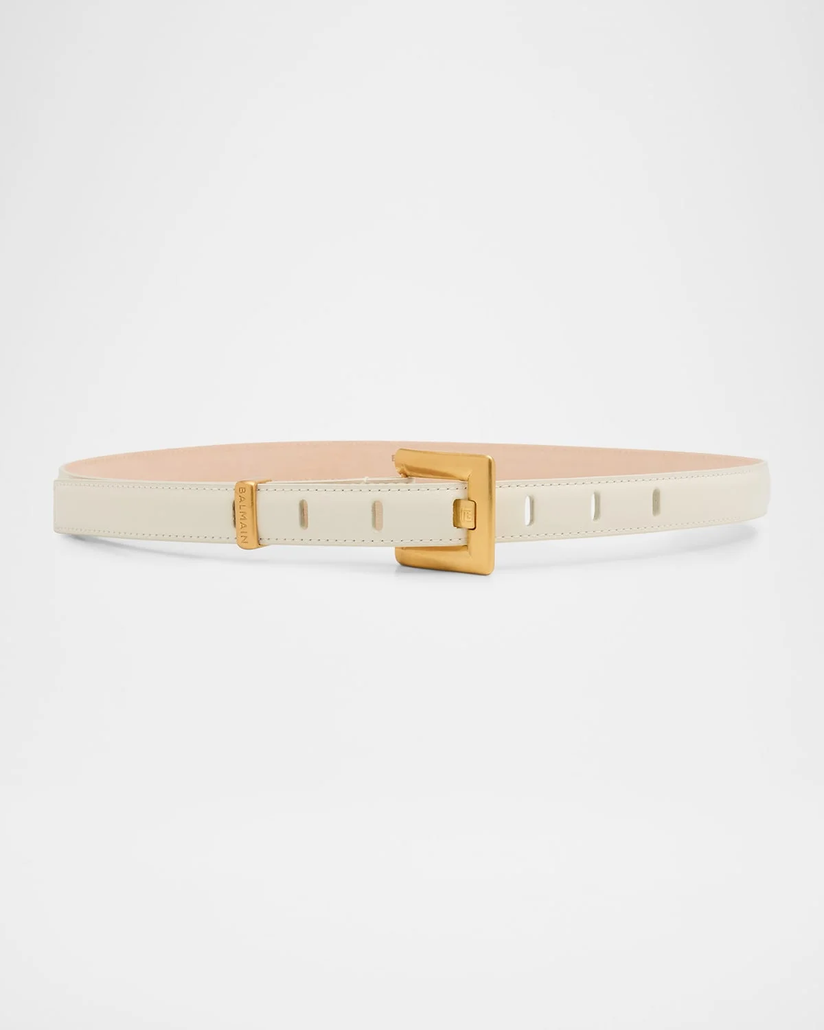 - Balmain calfskin leather belt finished with an embossed logo on the interior - Adjustable fit - PB-engraved prong - Logo-engraved metal belt loop - Buckle closure - Approx. 0.79"H - Made in Italy