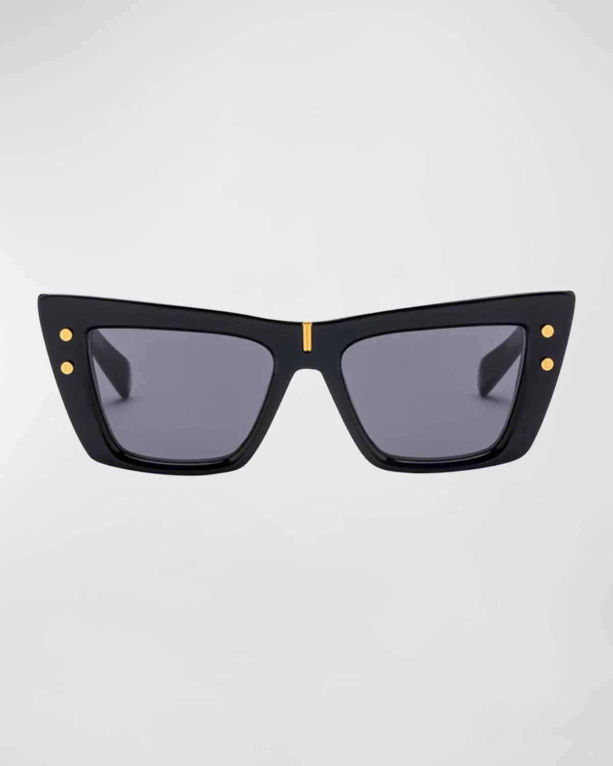 - Balmain "B-Eye" cat-eye sunglasses in acetate with golden hardware - Lens/bridge/temple (in mm): 54-18-145 - Solid lenses - Saddle nose bridge - B-monogram on temples - Thin, tapered arms - Spot clean - 100% UVA/UVB protection - Made in Japan - Proposition 65 warning for California residents