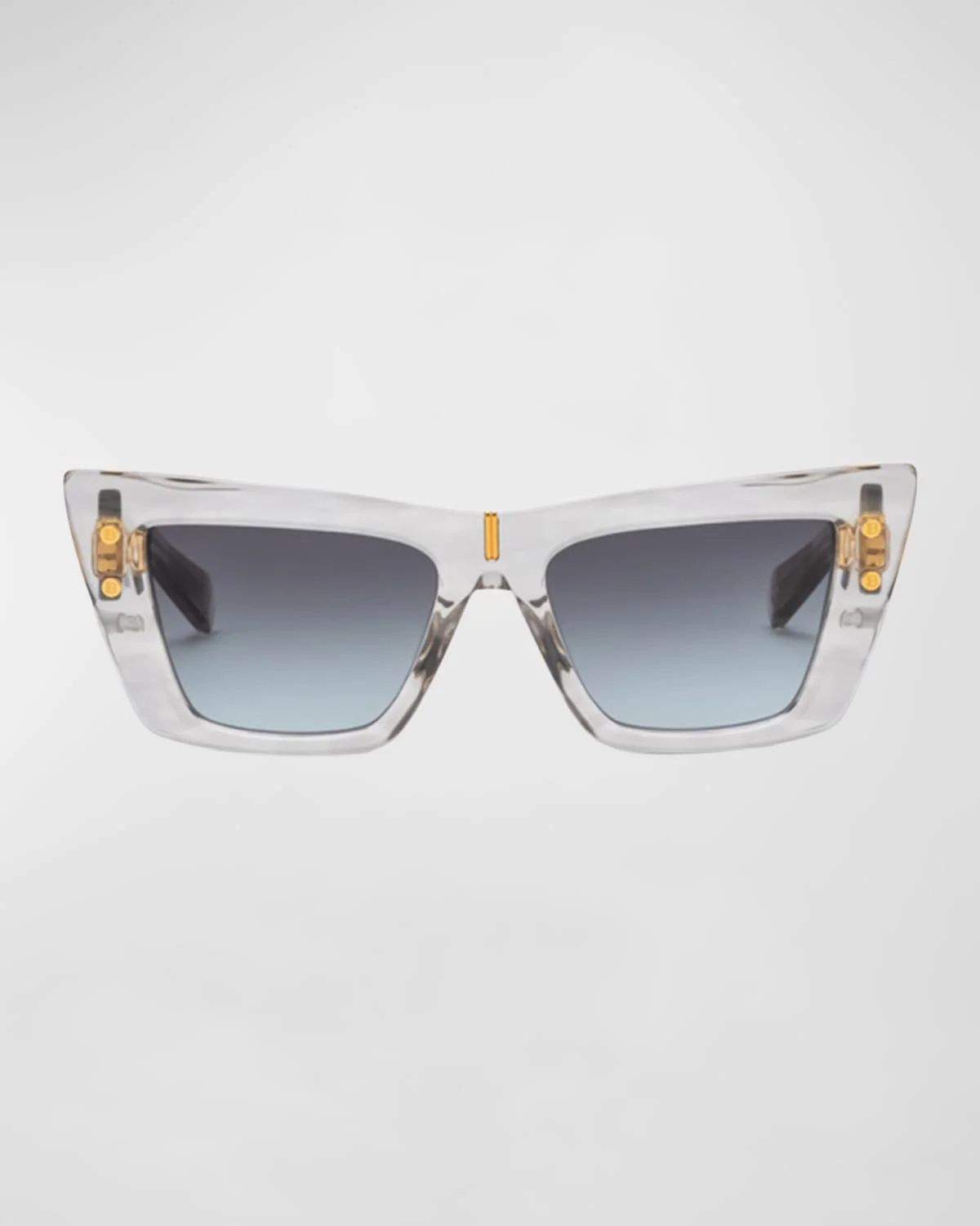 - Balmain "B-Eye" cat-eye sunglasses in acetate - Lens/bridge/temple (in mm): 54-18-145 - Gradient lenses - Saddle nose bridge - B-monogram on temples - Thin, tapered arms - Spot clean - 100% UVA/UVB protection - Made in Japan - Proposition 65 warning for California residents