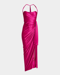 - Balmain dress fetauring interlocking draping with a waist drape panel and a thigh slit - Sweetheart neckline; self-tie halter back - Sleeveless - Sheath silhouette - Full length - Side slit hem - Zip closure - Viscose - Made in France