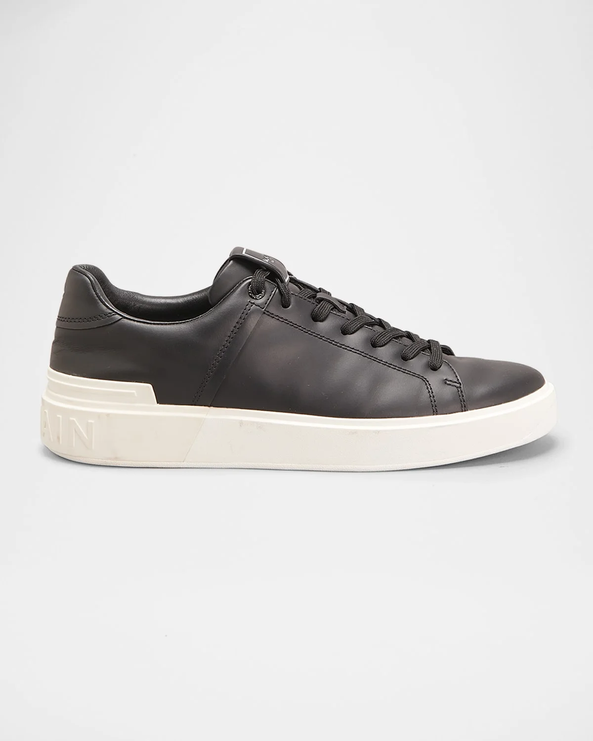 - Balmain "B-Court" low-top sneakers with smooth calf leather upper - Flat heel - Round toe - Lace-up vamp - Logo patch at tongue - Padded collar - Embossed logo motif at backstay - Embossed logo lettering at heel - Rubber outsole - Made in Italy