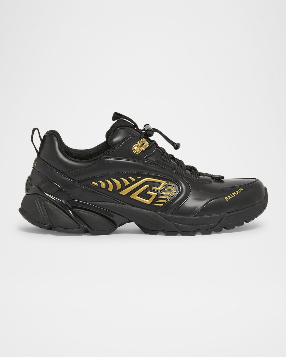 - Balmain "Cosmic Dust" low-top sneakers in technical materials highlighted by gold-tone accents - Flat heel - Reinforced round toe - Drawcord lace-up vamp - Tongue with branded pull tab - Technical fabric lining and insole - Padded collar - Backstay pull tab - PB logo embossed on the sides - Logo printed on the front and back - Sculpted rubber outsole - Spot clean - Imported