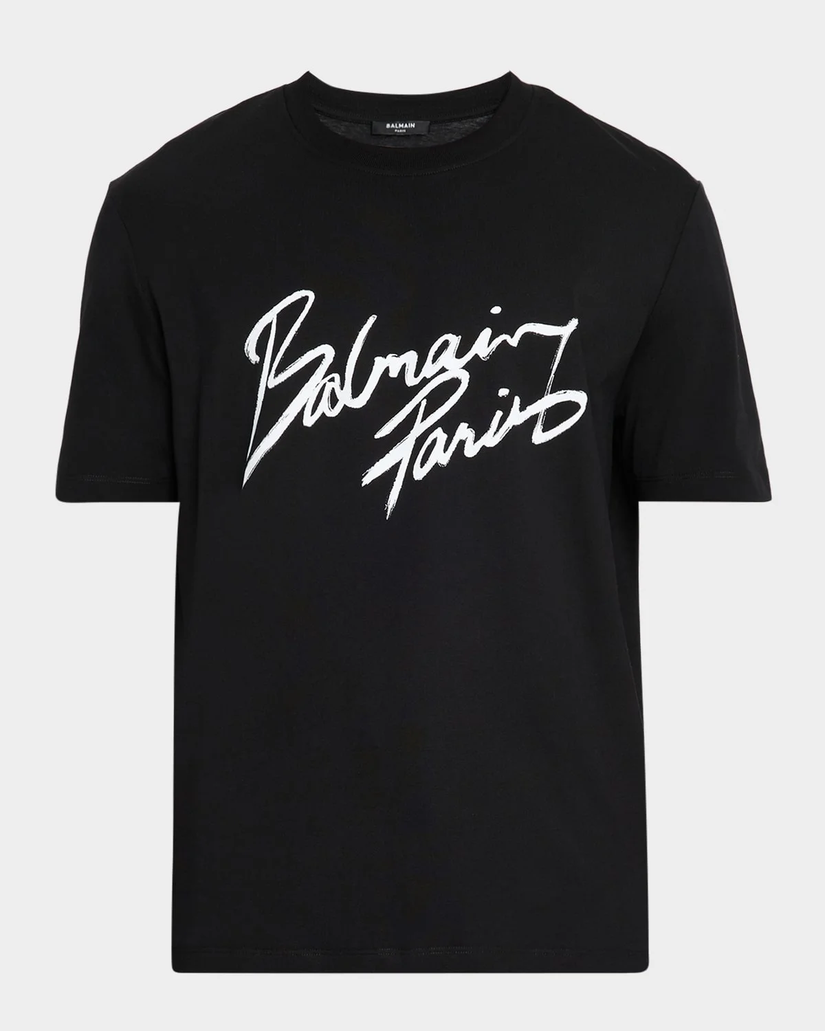 This designer Tshirt by Balmain displays a lipstick logo signature printed on the front for a modern aesthetic Crew neckline Short sleeves Pullover style Classic fit Cotton Made in Portugal