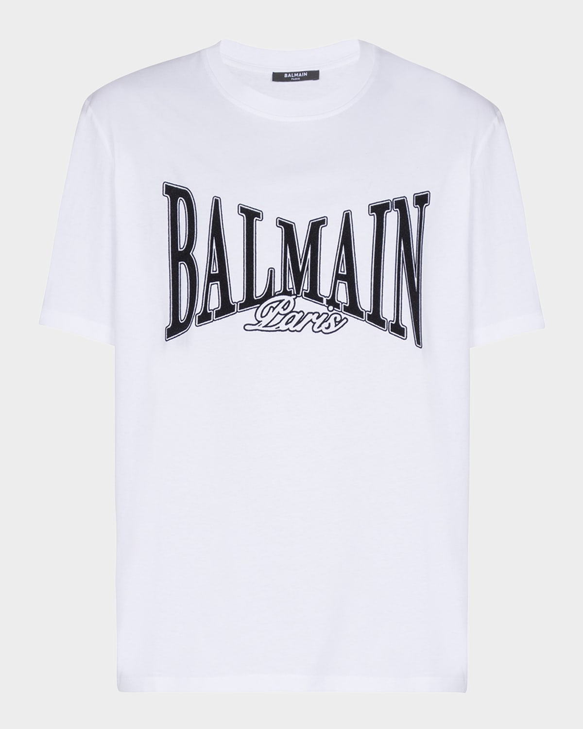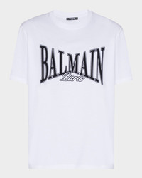 Balmain Tshirt in cotton displays a flocked Balmain College logo on the front for a bold, textured finish Crew neckline Short sleeves Pullover style Classic fit Cotton Professional cleaning recommended Made in Italy