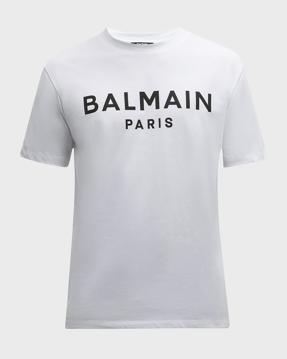 - Balmain T-shirt with contrast logo print at chest - Crew neckline - Short sleeves - Pullover style - Cotton - Made in Portugal - Model is 6'1"/185cm.