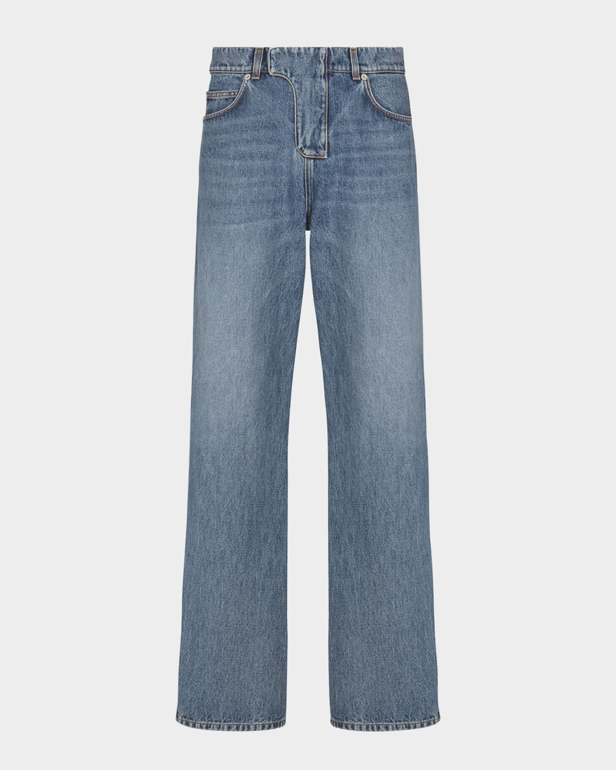 Balmain jeans in cotton denim with subtle whiskering and a distinctive triple belt loop on the back Regular rise Fivepocket style Back label Loose fit through straight legs Covered zipsnap front; belt loops Cotton Professional cleaning recommended Made in Italy