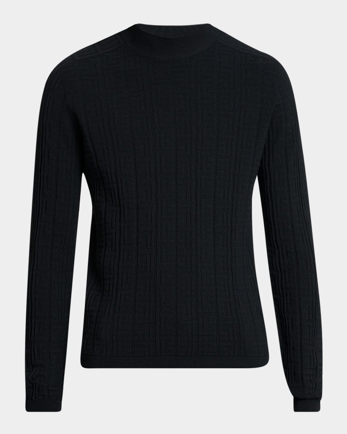 - Balmain sweater showcasing an allover tonal monogram jacquard knit pattern - Ribbed mock neck - Long sleeves - Ribbed cuffs and hem - Pullover style - Viscose/polyester - Professional cleaning recommended - Made in Italy