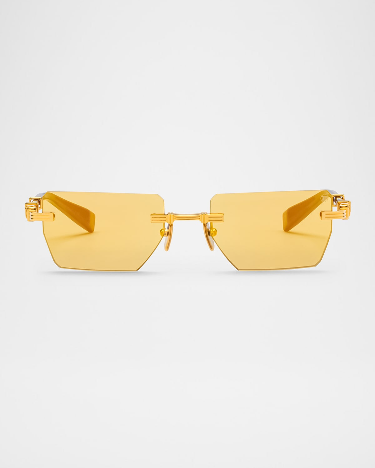 - Balmain "Pierre" rectangle sunglasses in titanium - Gradient lenses - Adjustable nose pads - Thin, tapered arms - Capped earpieces - Classic logo at lens - Titanium - 100% UVA/UVB protection - Made in Japan - Proposition 65 warning for California residents