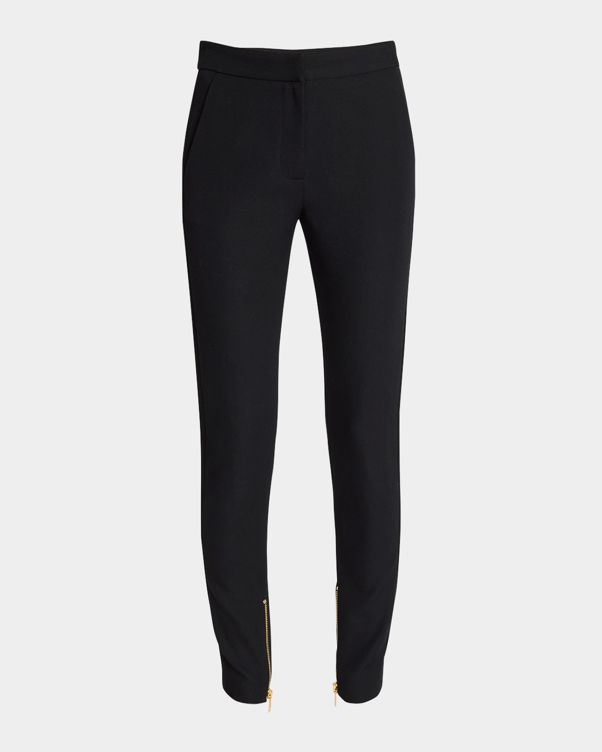 - Balmain wool satin pants finished with a zipped hem - Low-rise; sits at the hip - Side pockets; back welt pockets - Second-skin fit - Ankle length - Hook/zip fly - Wool - Professional cleaning recommended - Made in Portugal