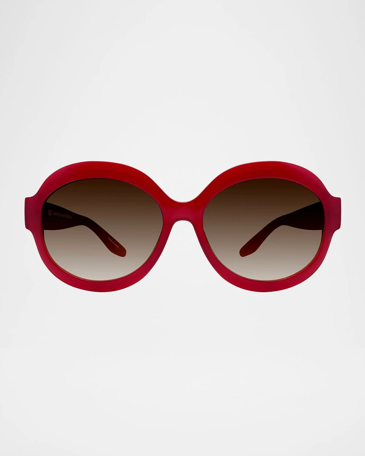 Barton Perreira "Orleandra" round sunglasses in zyl & nbsp; Eye/bridge/temple (in mm): 59-17-145 Gradient lenses Saddle nose bridge Thin, tapered arms Universal fit Zyl/titanium Wipe clean 100% UVA/UVB protection Made in Japan Proposition 65 warning for California residents
