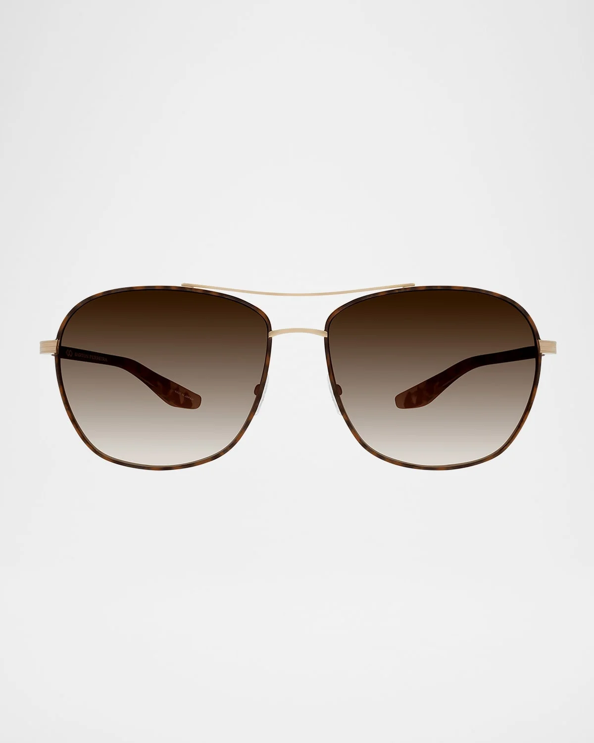 Barton Perreira "Sully" aviator sunglasses in titanium & nbsp; Eye/bridge/temple (in mm): 59-15-145 Gradient lenses Adjustable nose pads Thin arms Universal fit Titanium/zyl Wipe clean 100% UVA/UVB protection Made in Japan Proposition 65 warning for California residents