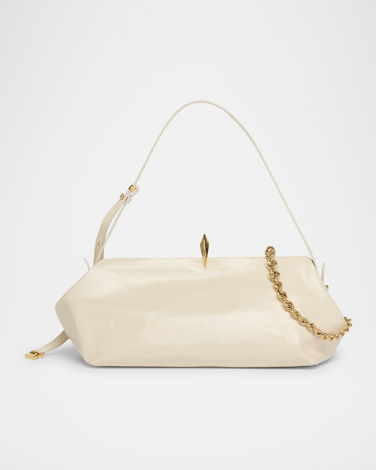 - Benedetta Bruzziches "Sophia" shoulder bag in smooth leather and aluminum - Chain wristlet strap - Adjustable shoulder strap - Framed top with magnetic closure - Interior, three slip pockets - Approx. 4.7"H x 9.6"W x 4.3"D - Item Weight (Lbs.): 1.5 - Professional cleaning recommended - Made in Italy