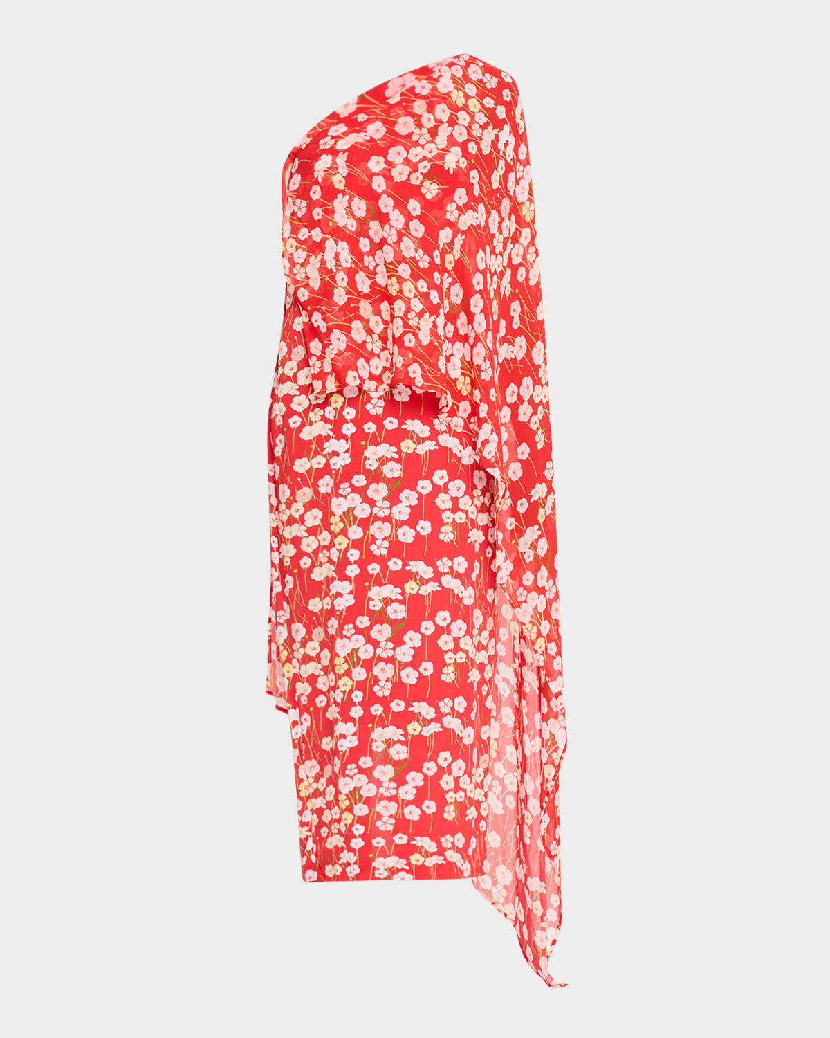 Nick Floral One-Shoulder Poncho Ankle Dress