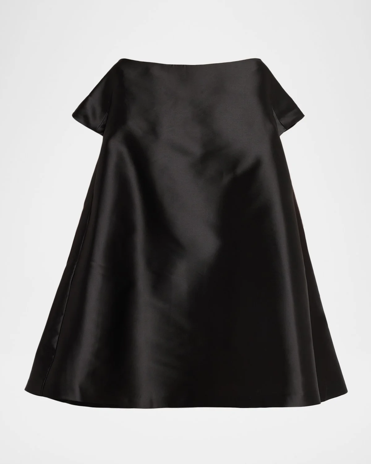Crafted from lustrous satin, the "Will" dress from BERNADETTE features an inverted pleat capelike back adorned with a bow High neckline Short sleeves Shift silhouette Mini length Polyester/silk Made in Portugal
