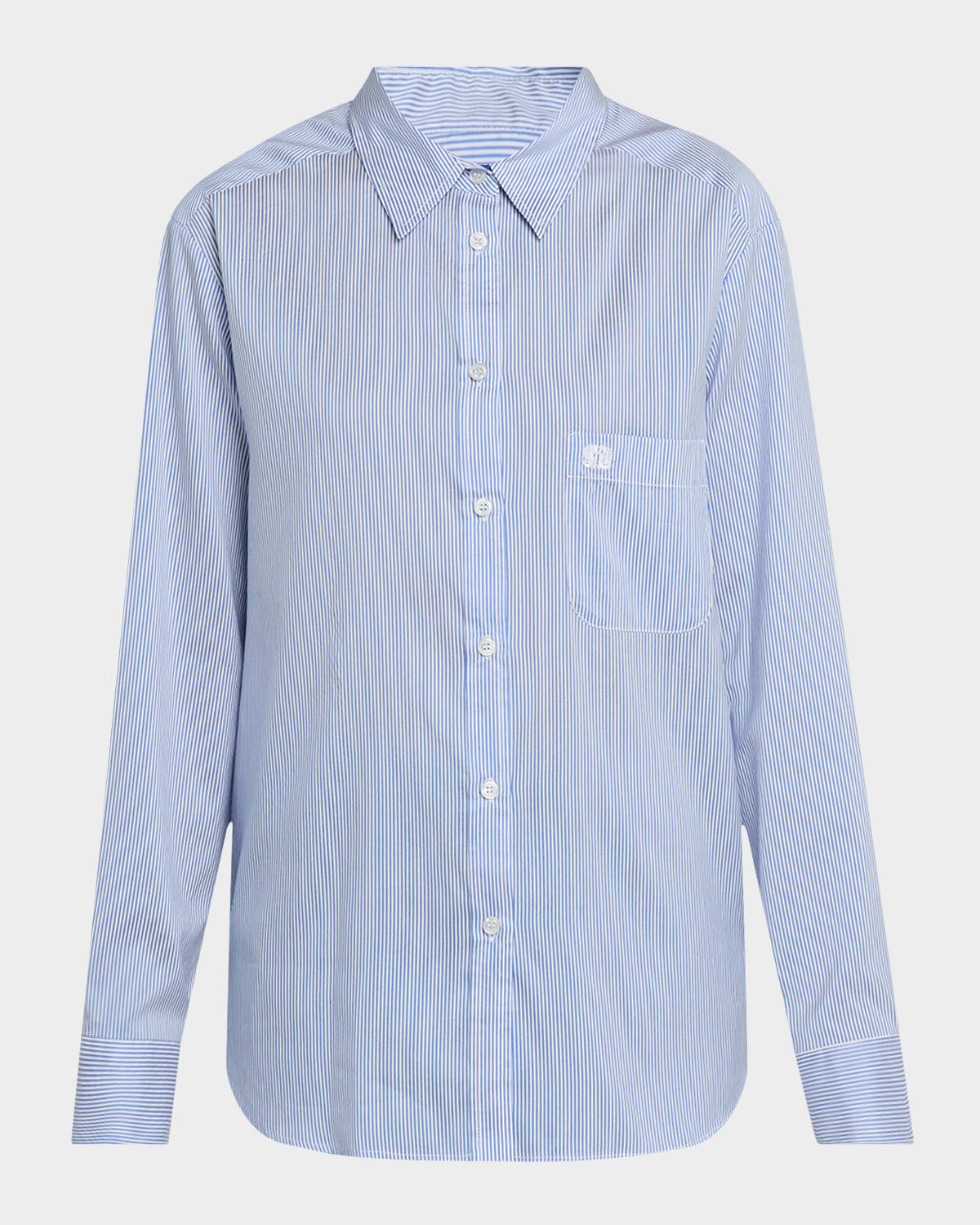 - BLAZE Milano "Catalina" shirt in striped silk-blend - Point collar; button front - Long sleeves; button cuffs - Chest patch pocket - Yoked back; box pleat - Loose fit - Shirttail hem - Silk/cotton - Unlined - Dry clean - Made in Italy
