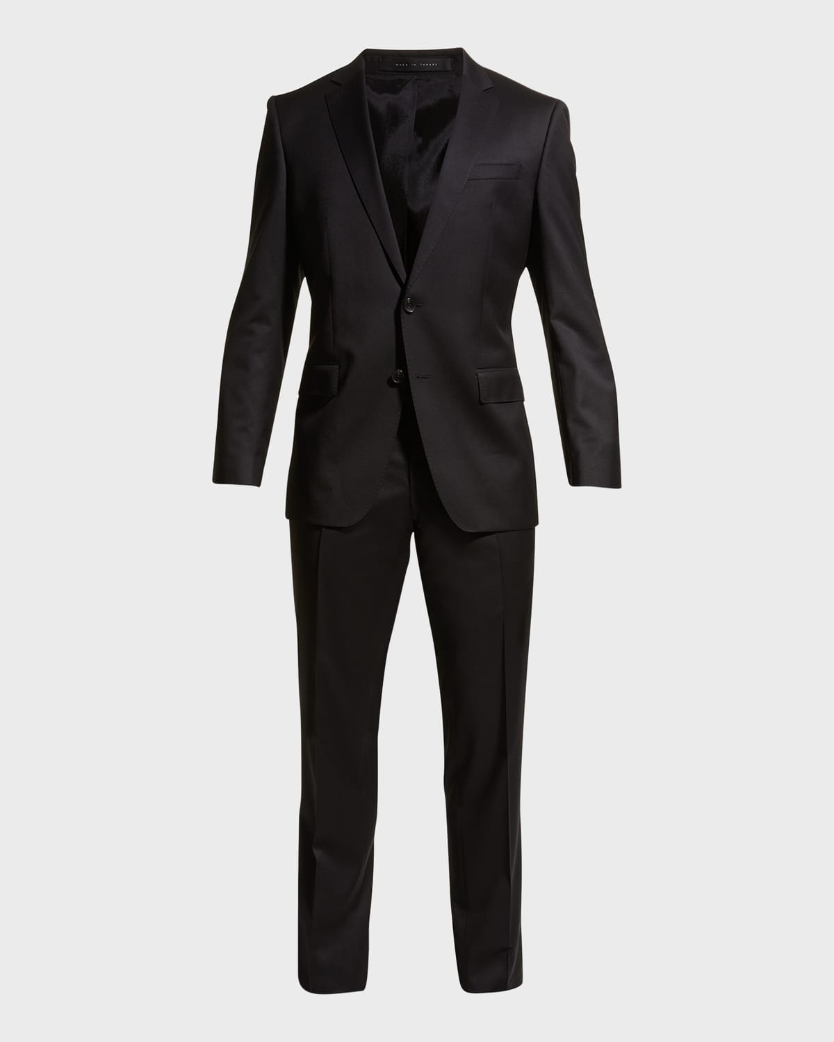 Men's Stretch-Wool Basic Two-Piece Slim Fit Suit, Black
