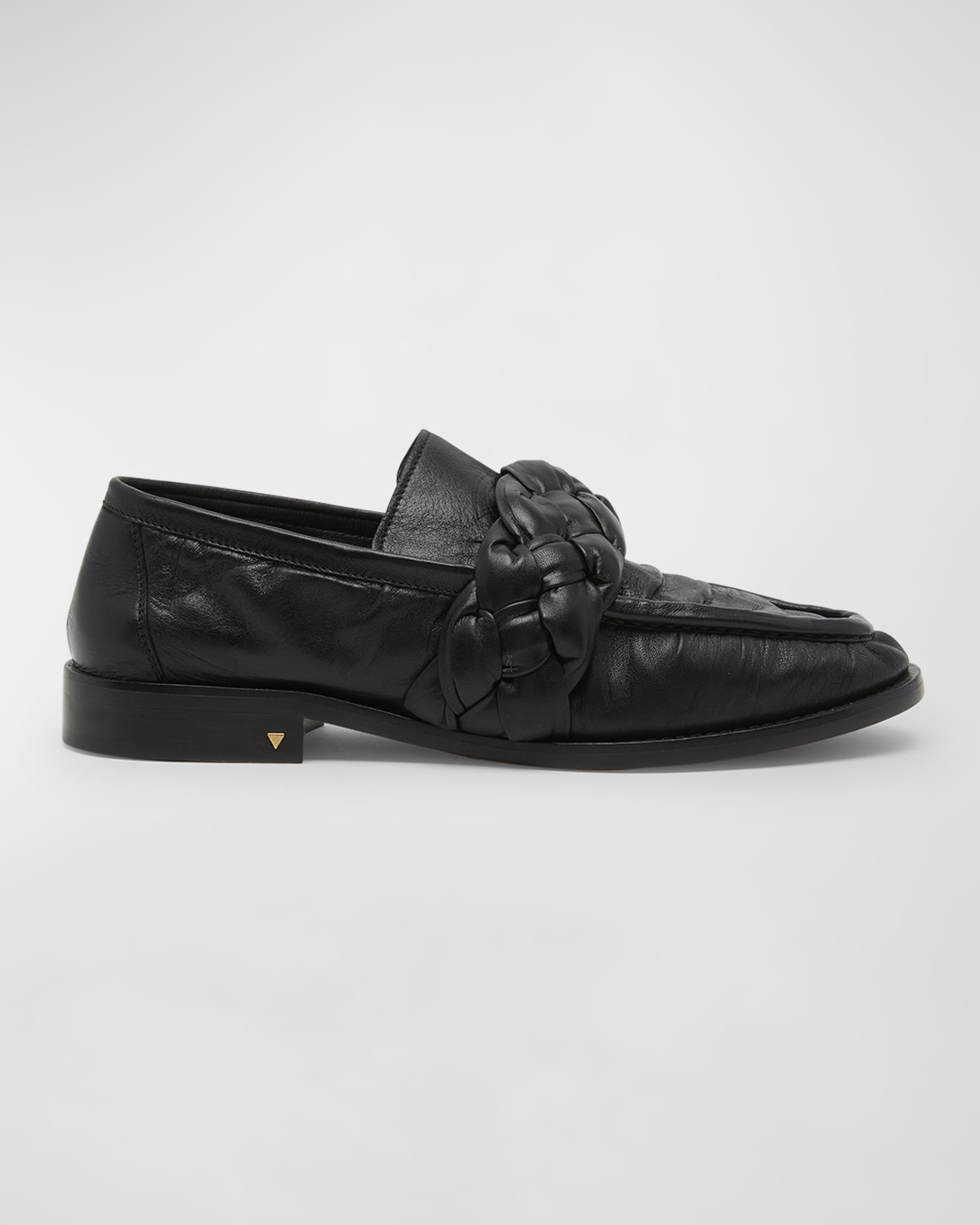 - Bottega Veneta "Astair" soft, crinkle leather loafers with braided leather strap - Flat heel - Round moc toe - Notched vamp - Slip-on style - Leather outsole - Made in Italy
