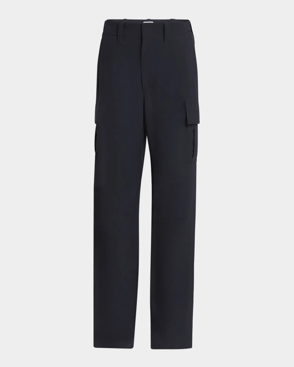 Bottega Veneta fine wool cargo trousers High waist Full length Wide legs Side slip pockets; back flap pockets Adjustable side straps Tab/zip fly; belt loops Wool Made in Italy Model is 5 & apos;10"/177cm.