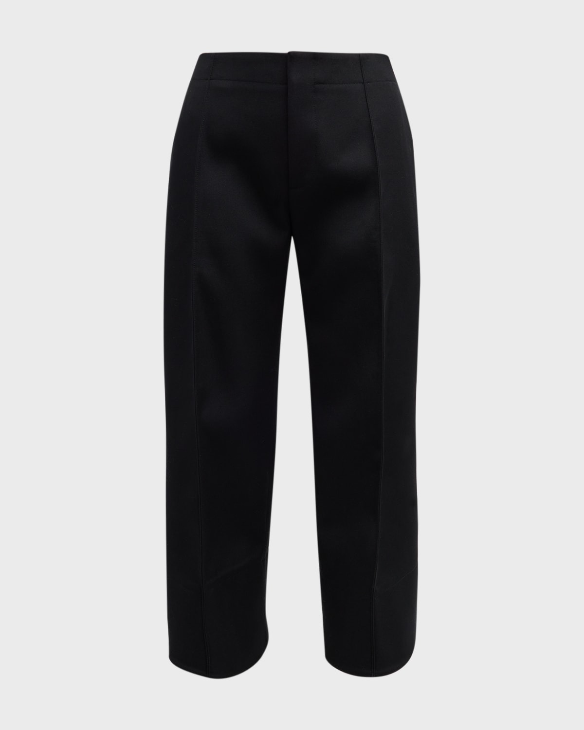 Bottega Veneta compact wool cropped & nbsp;flare trouser pants Concealed zip front & nbsp; Back welt pocket & nbsp; Cropped fit; asymmetric hem & nbsp; Wool Made in Italy Model is 5 & apos;10"/177cm.